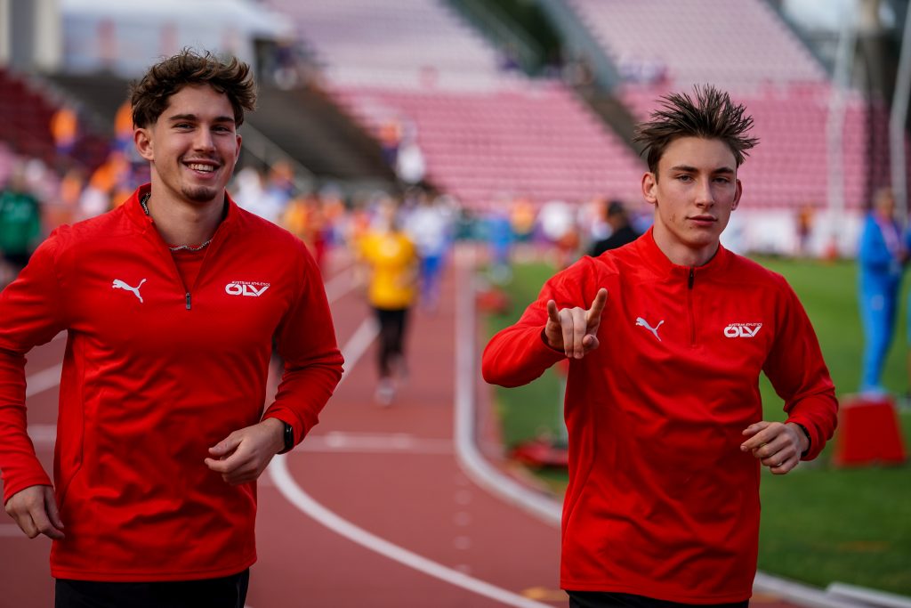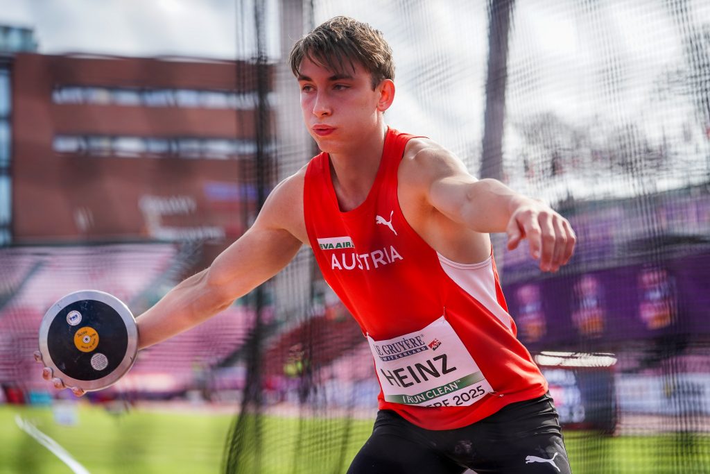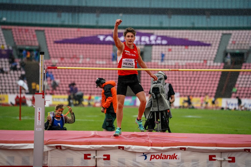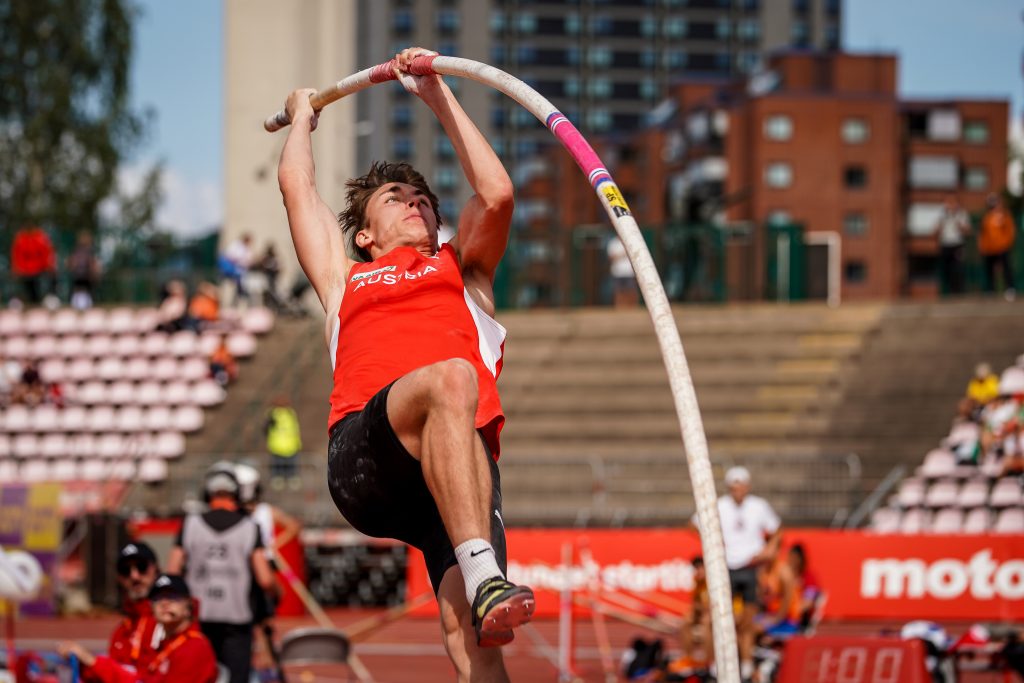 Alexander HEINZ aus Gmunden (TGW Zehnkampf-Union, Jg.2006) eröffnete schon Donnerstag früh als erster von 15 ÖLV-Startern. Am ersten Tag gelangen persönliche Bestmarken im Kugelstoß und Hochsprung. Am zweiten Tag kam Alex noch besser in Schwung und er verzeichnete PBs über 110 m Hürden, im Diskuswurf, im Speerwurf und über 1500 m. Zur neuen PB im ZEHNKAMPF von 7.414 Punkten kam er mit folgenden Einzelleistungen, wobei eigentlich nur der Weitsprung (mit viel Verschenken vor dem Balken) eine Enttäuschung brachte für den vollfitten, aber leider doch erst 72 kg „zarten“ Athleten brachte, der schon im Alter von drei Jahren zur LA gekommen war mit seinen zwei älteren Brüdern. 11,39(-1,4)-6,52-12,05-1,88-49,28 / 15,33-44,24-4,50-54,57-4:20,80 – insgesamt also 7 persönliche Bestmarken und am zweiten Tag in zwei Bewerben besser als der polnische Goldmedaillengewinner und neue U20-Weltrekordmann aus Polen Hubert TROSCIANKA (Diskus 44,24 zu 43,36 m, und 1500 m 4:20,80 zu 4:28,59)! Über 1500 m kam er sogar als Zweiter der 24 Zehnkämpfer ins Ziel!